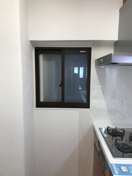部屋内から見て右側にはキッチンの壁があり、どの様に内窓が取りつくのでしょうか……?