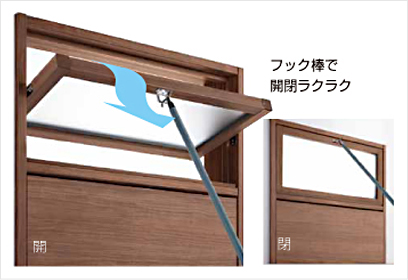 開閉機能を持つランマドア。ドア本体を開けなくても、通風することができます。