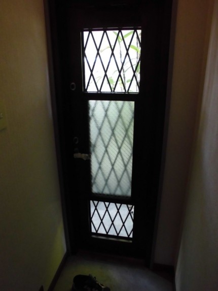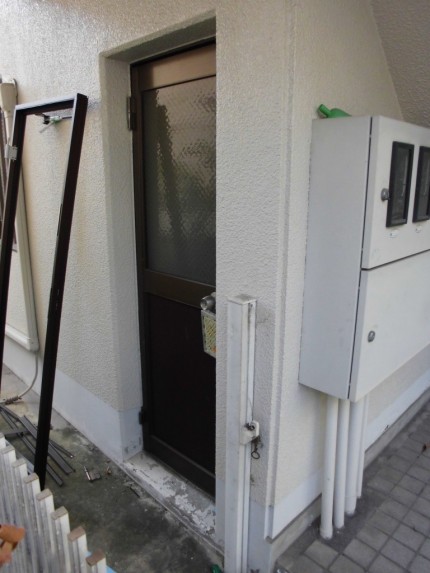 今回のご依頼は、古くなった勝手口の取り替えです。 新しく取り付けるのは、人気商品の通風勝手口です、このタイプのドアですが、色々なデザィンがありますので、商品を選ぶ楽しさもあります。こちらのドアを取り替えていきます。