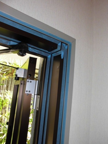 青い部分は、コーキングを打つところに、はみ出さないように、テープを貼ったところです。