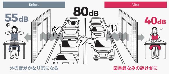 外窓だけでも音量を抑えることはできますが、内窓をつけることでさらに効果大!