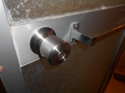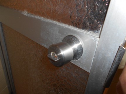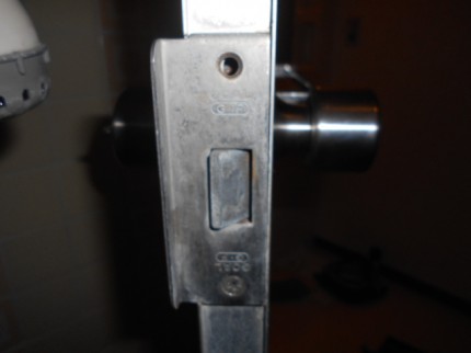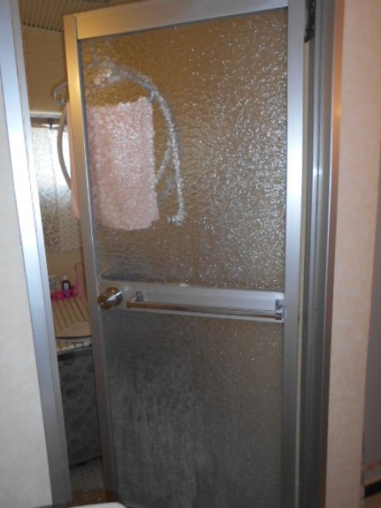 浴室用ではない、框ドアが取付けられており、握り玉部分が錆び付いて動かなくなっていました。