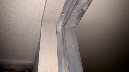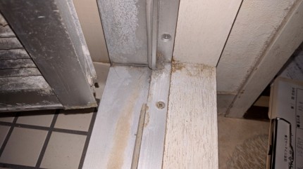 既存ドア枠の内側に取付る為、枠の状態を確認します。今回は、取付けが可能です。