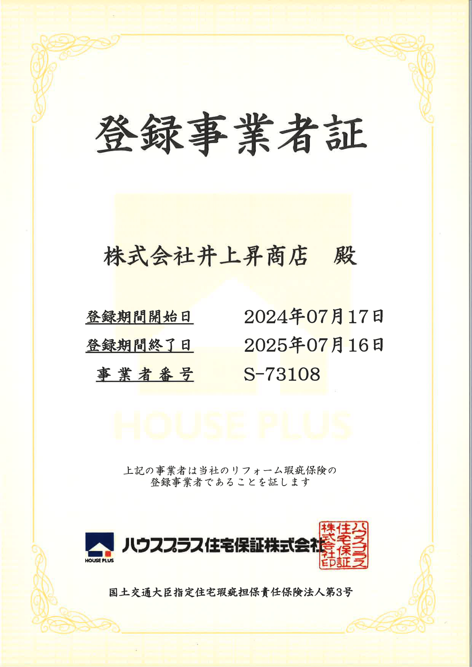 MADOショップ吹田中央店はリフォーム瑕疵(かし)保険登録事業者です。
