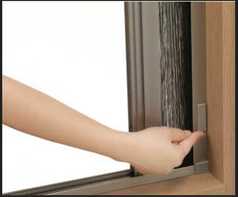 アルマーデⅢは防虫網(ネット)に特殊加工を施したコシのあるプリーツネットを採用しています。風によるたわみも少なく、形材にすっきりと収納されます。そのため網戸を使わない季節には窓の眺望を妨げることがなく、窓からの景色をお楽しみいただけます。