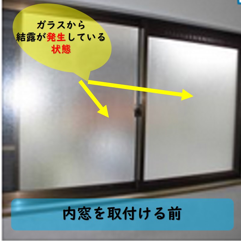 既存の窓の内側に内窓を取付る事で空気層ができ、空気層が結露の発生を低下させてくれます。