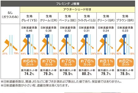 日射遮蔽率も高く、70%~80%日射をカットしてくれます。