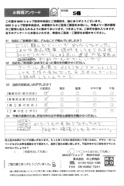 MADOショップというものをしらないので、YKKに頑張らした方が良い。