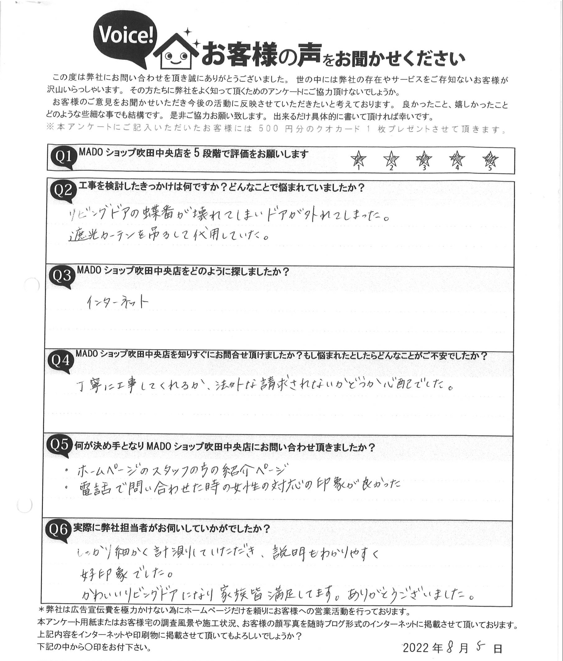 かわいいリビングドアがつきました。取付させて頂いたお客様の声になります