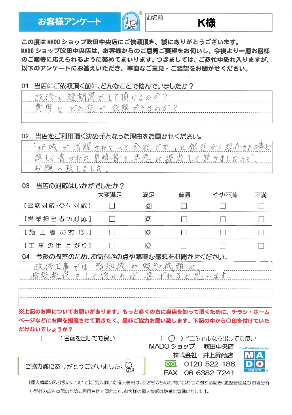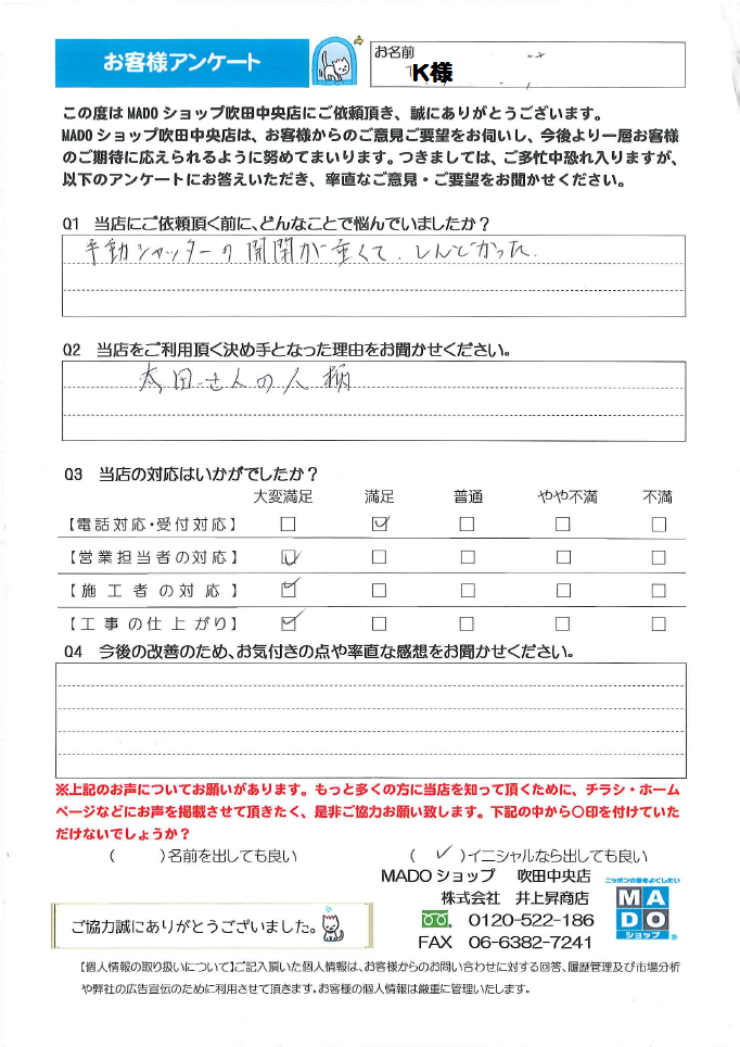 吹田市・豊中市|玄関・窓リフォーム・内窓取付|井上昇商店|