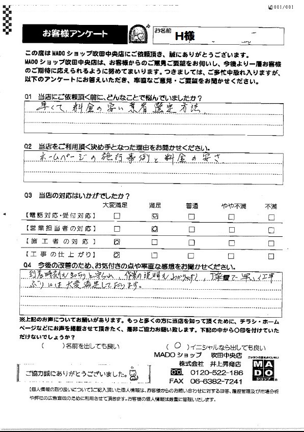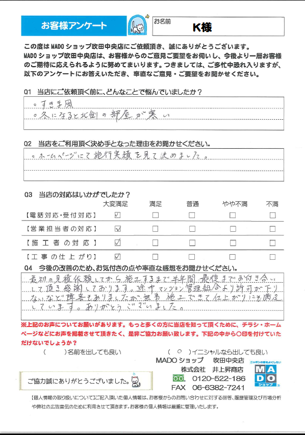大阪府吹田市 H様 内窓取付工事