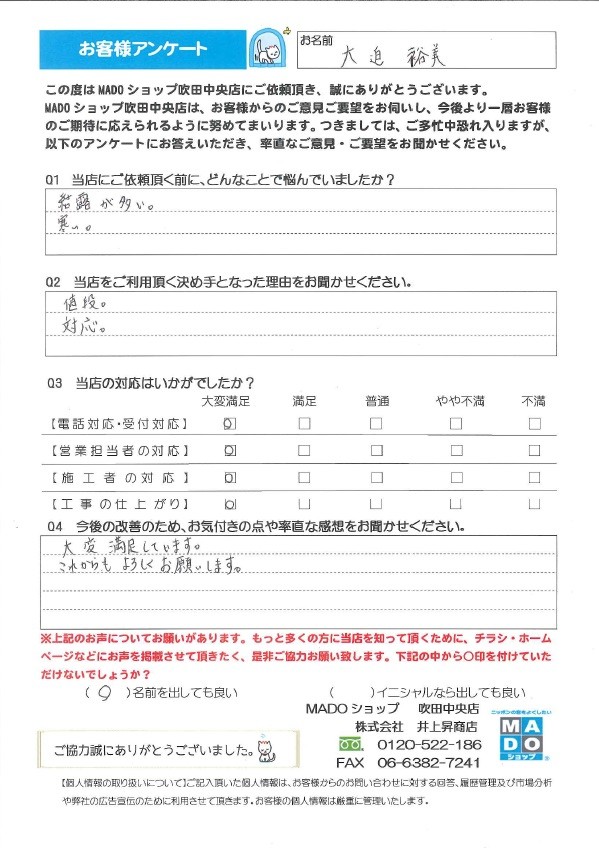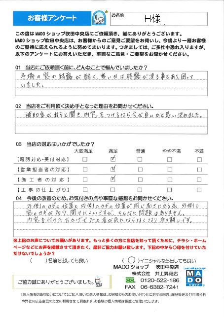 大阪府吹田市のF様から内窓取付のご依頼を頂きました。