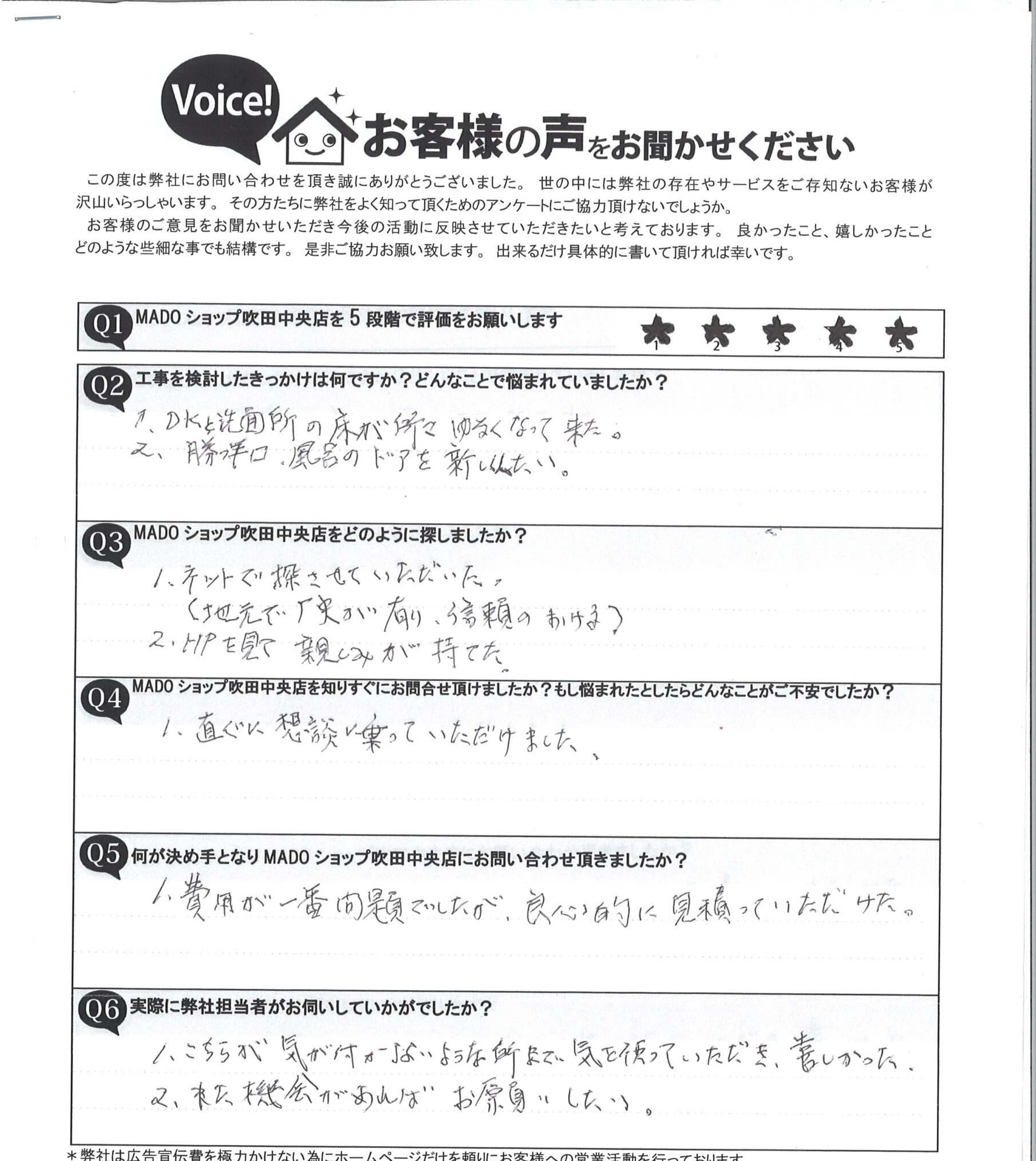 Q5 何が決め手となりMADOショップ吹田中央店にお問合せ頂きましたか?