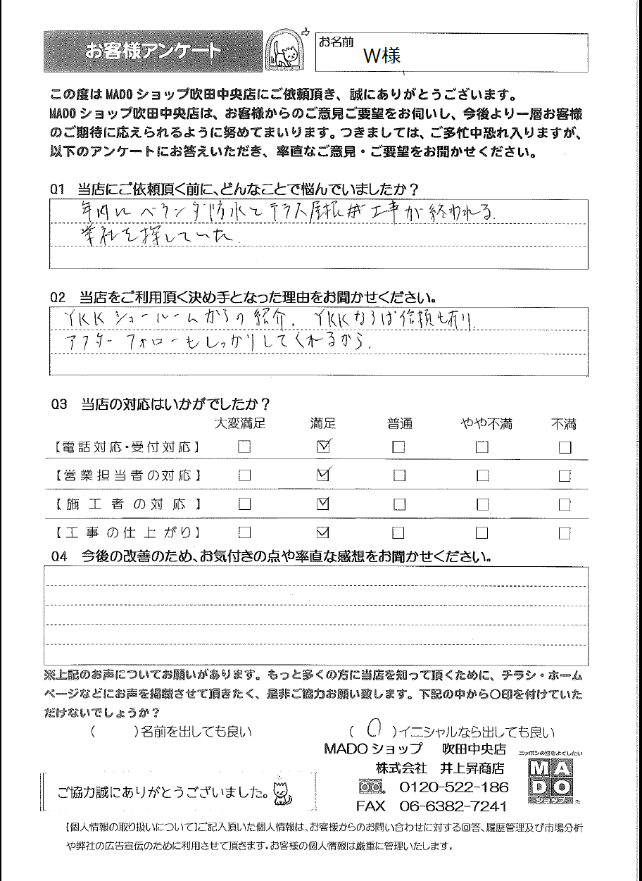 A.YKKショールームからの紹介。YKKならば信頼もあり、アフターフォローもしっかりしてくれるから。