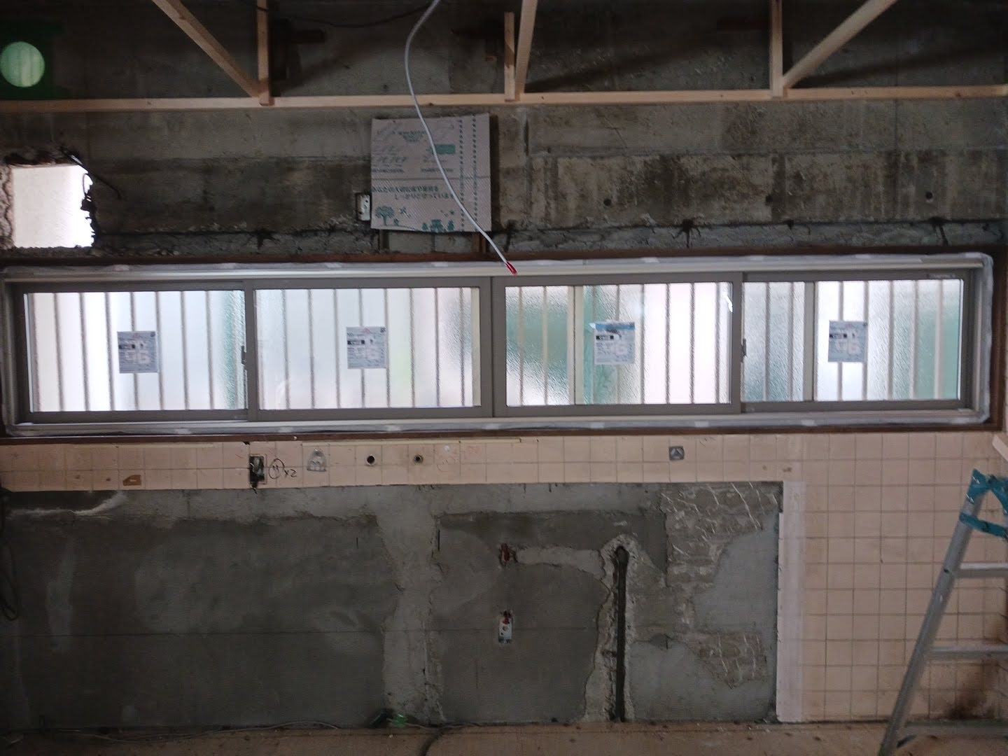 既存ご自宅の浴室とトイレの窓です。近隣の2Fからの目線が気になるので何か良い対策方法はないでしょうか?とご相談を受けました。ご希望は、風も通って、室内が暗くならないものがが良いとの事でした。お提案商品は、YKKAP製ウインバイザーポリカタイプです。2Fからの目線を遮り、雨除けとしても使用でき、適度な採光性も有ります。この商品にご納得いただき取付する事となりました。施工中①施主様のご希望により既存の面格子は取り外すことなく、その上からウインバイザーを取付します。まず、土台部を既存面格子に左右2カ所、高さを合わせて、しっかりと電動インパクトドライバーでビス止めしていきます。施工中②目隠しになるポリカーボネート製羽根です。施工中③羽材を一枚づつ取り出します。施工中④羽根側面左右二か所に、樹脂製キャップをはめ込みます。施工中⑤先に取付しました土台に、下から一枚づつはめ込んで行きます。施工中⑥下から3枚はめ込みました。施工中⑦トイレの窓は全てはめ込みました。次は隣の浴室窓です。施工中⑧同じように下から、先に取付した土台にはめ込んで行きます。施工後2台分完成しました。半透明のポリカーボネートにすり調仕上げが適度な採光性と目隠し効果を両立します。