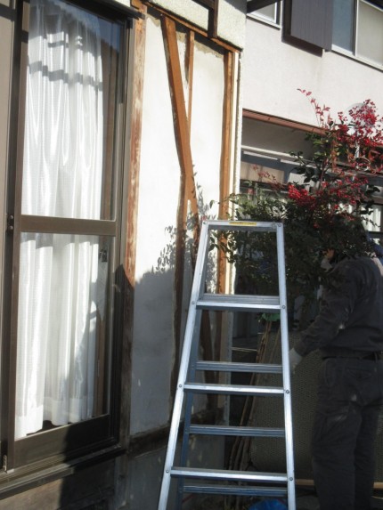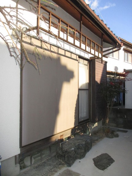 まず、電動シャッターを取付ける為に既存の雨戸戸袋と戸板を取外しました。