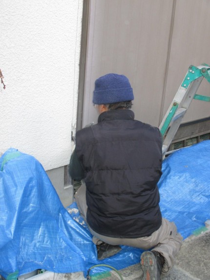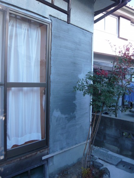 雨戸戸袋を取り外し、塞いだ後、ラスカットを固定したら左官工事をし、シャッター工事の準備は整いました。