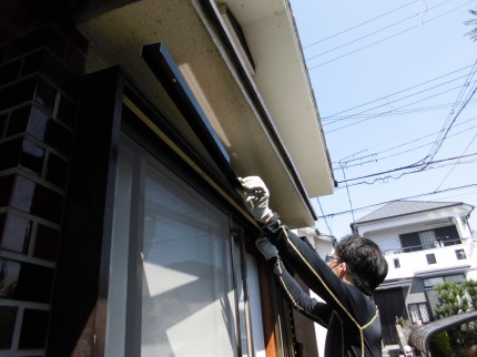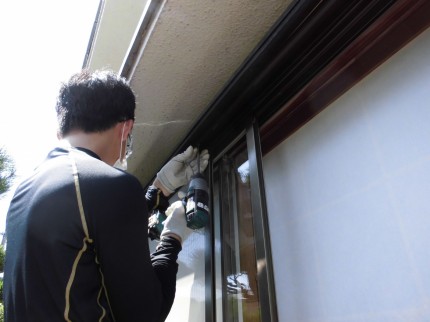 施工中③ 既存の雨戸用レールを取り外して行きます。