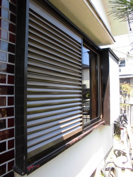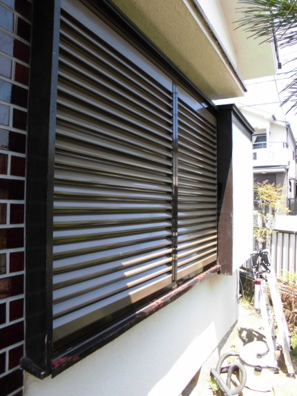 吹田市 木製雨戸をアルミ雨戸(面材スチール)に取替完了までの写真です。