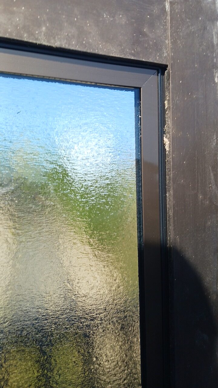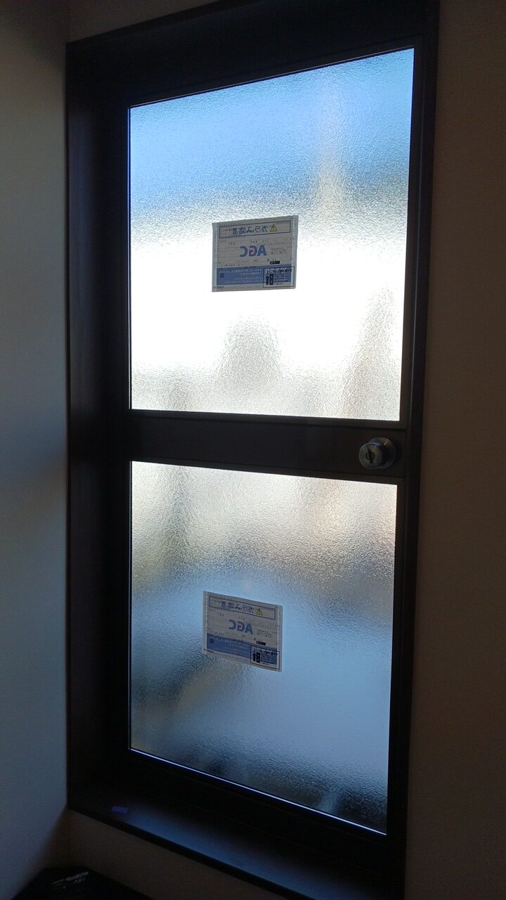 施行中⑥ アタッチメント付LOW-E複層硝子は写真の様に硝子廻りに1.5センチ程アルミのフチが見える様になります。