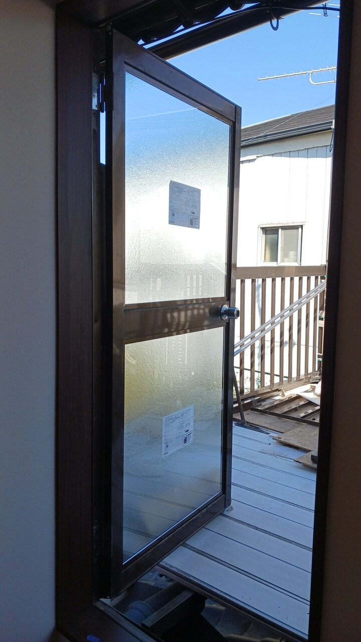 ご自宅2Fバルコニー出入り口のアルミ框ドアの硝子交換のご相談が有りました。断熱効果と日射を遮る効果の硝子にしたいとの事でしたので、硝子溝の細い(9㎜)単板硝子用ドアにも設置可能なアタッチメント付LOW-E複層硝子に取替する事となりました。