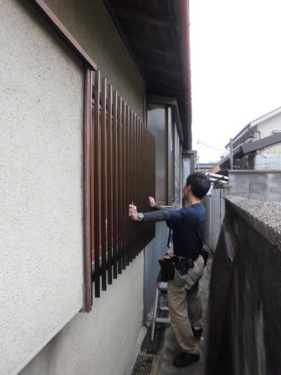 吹田市 防犯対策で1F雨戸付窓1カ所、出窓2カ所、計3カ所アルミ縦面格子取付を取付しました。