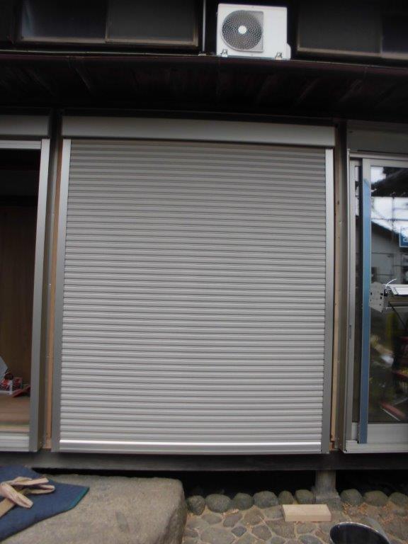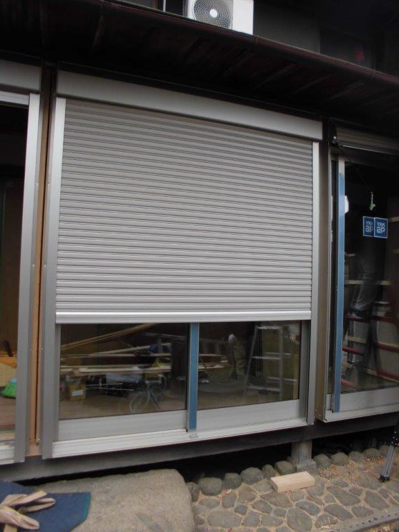 施工後②閉時の写真です。今回の商品はYKKAP製フレミングJ電動シャッター付サッシ、プラチナステン色のご紹介でした。