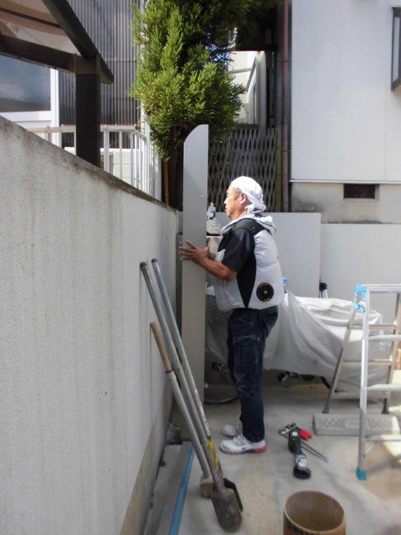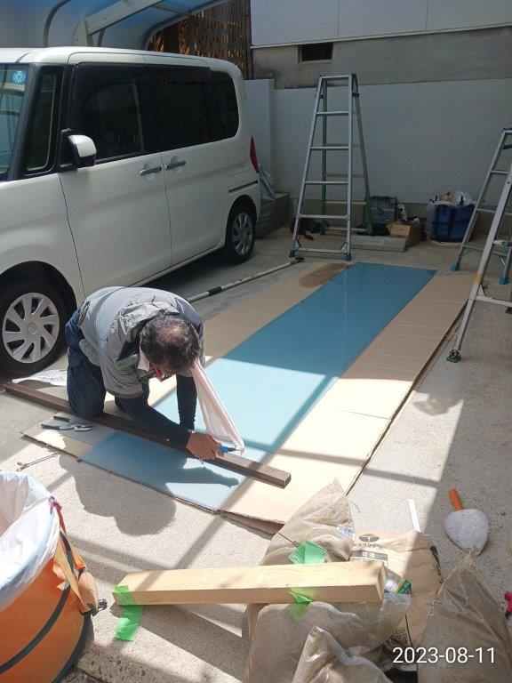 施工中⑤ カーポート前部の柱も設置し同じ作業を行います。
