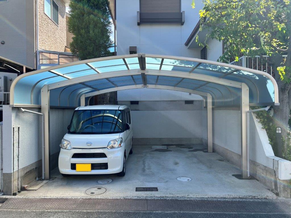吹田市 YKKAP製2台用カーポート取付アリュースキャップM合掌取付施工例です。