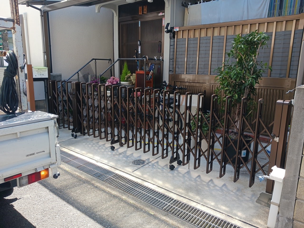 尼崎市 車庫の前に伸縮ゲートを取り付けたい!YKK AP伸縮ゲート レイオス