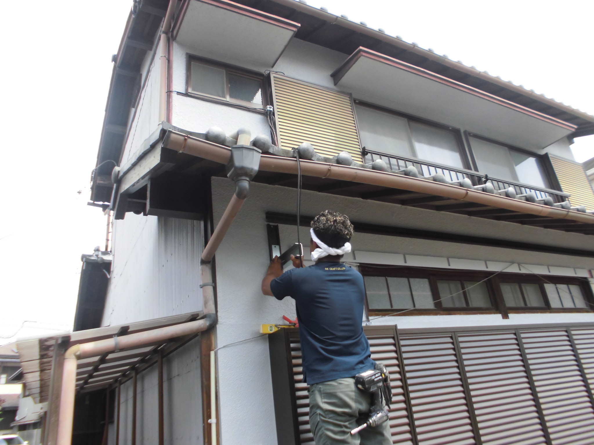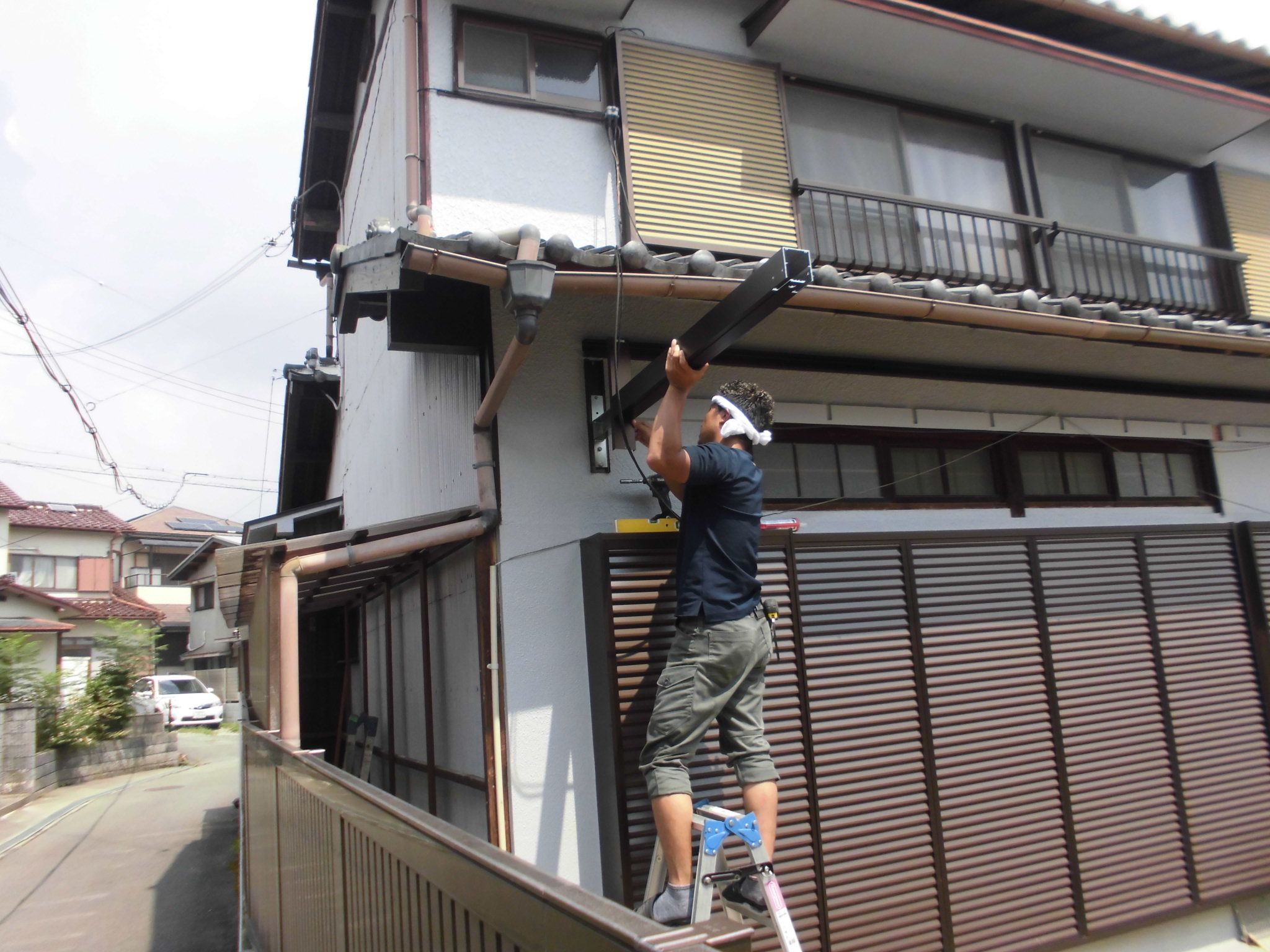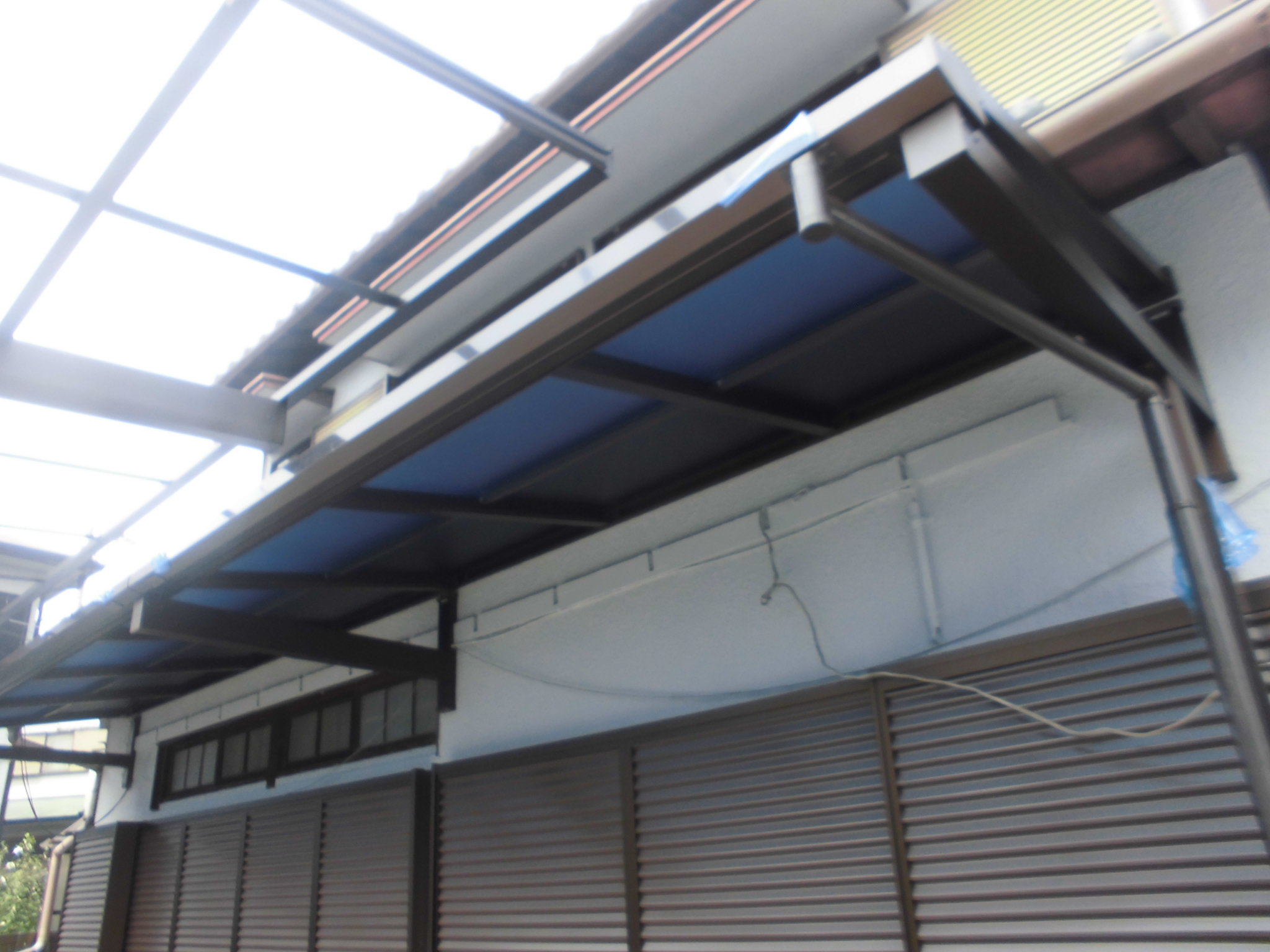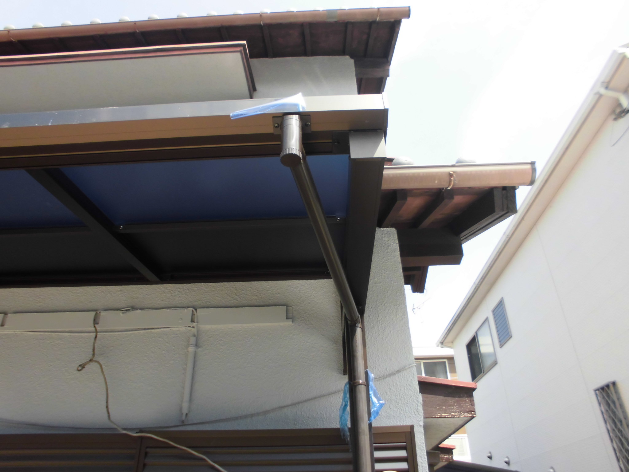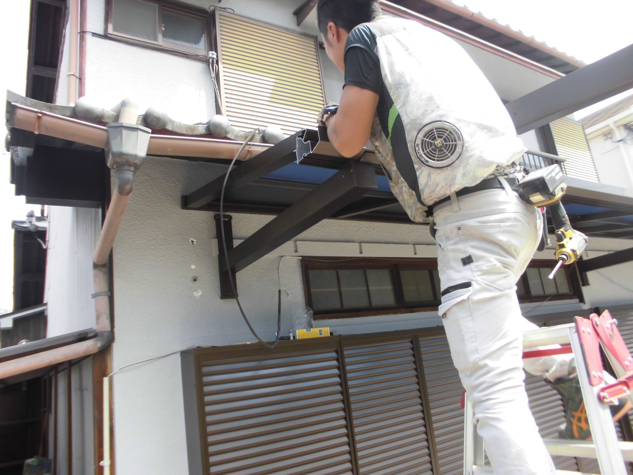 吹田市 YKKAP製ソラリア持ち出し屋根(柱無し)出幅1170㎜巾6370㎜フラット型の取付例です。