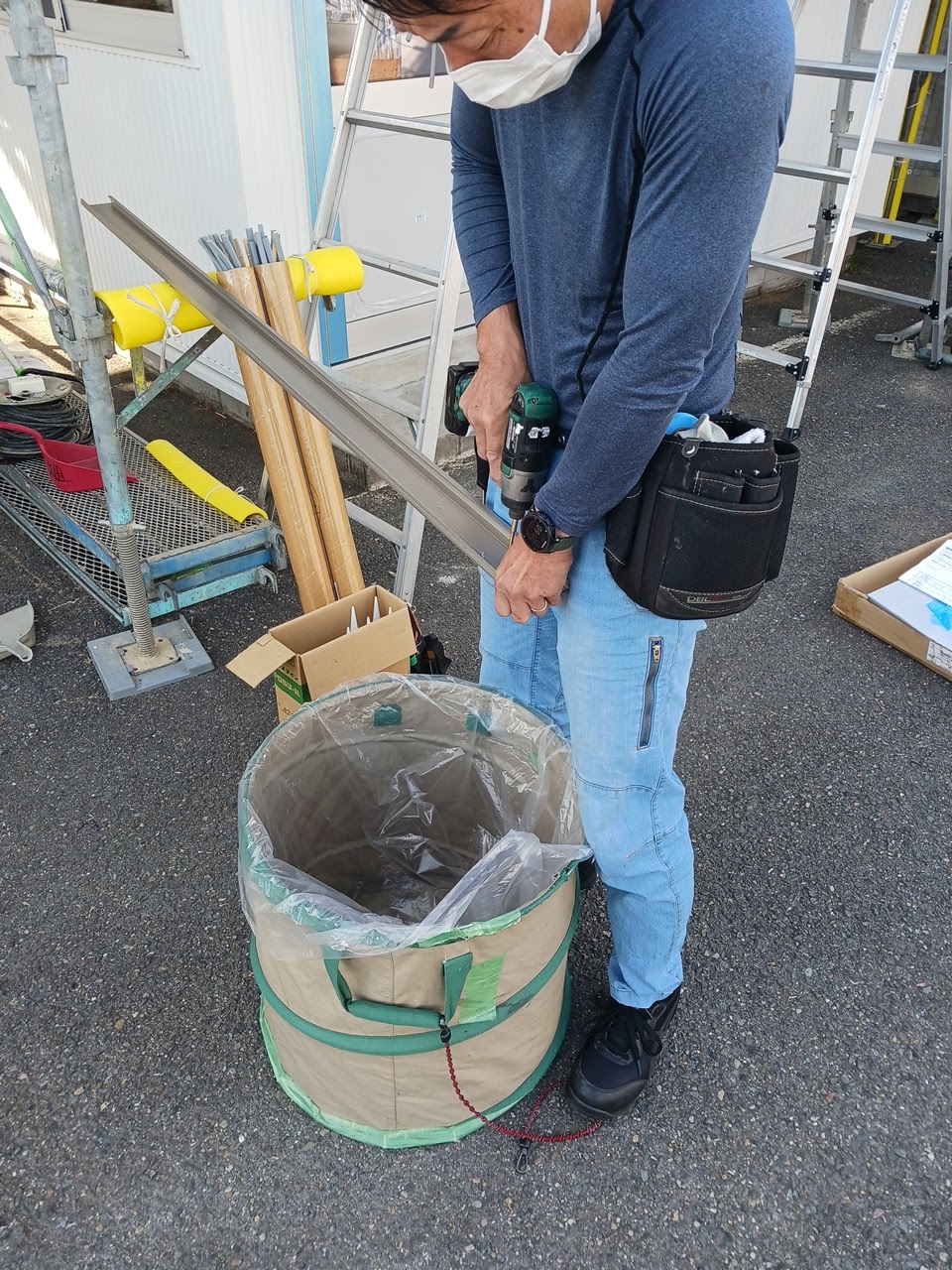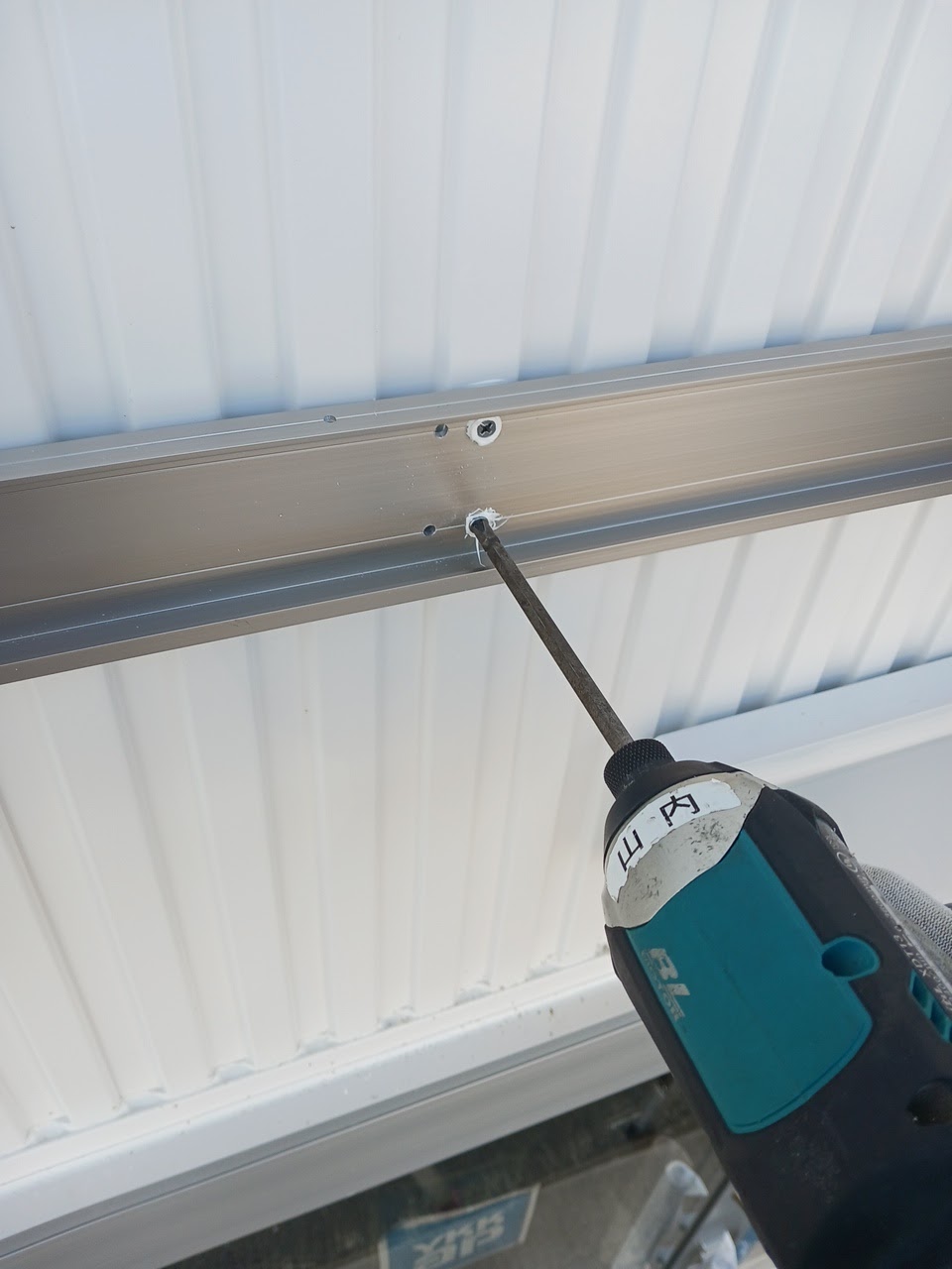 こちらは施工中の写真になります。まずは取付ベースに取付用の穴を開けていきます。取付穴は、メーカーで規定されているピッチ以内で施工します。