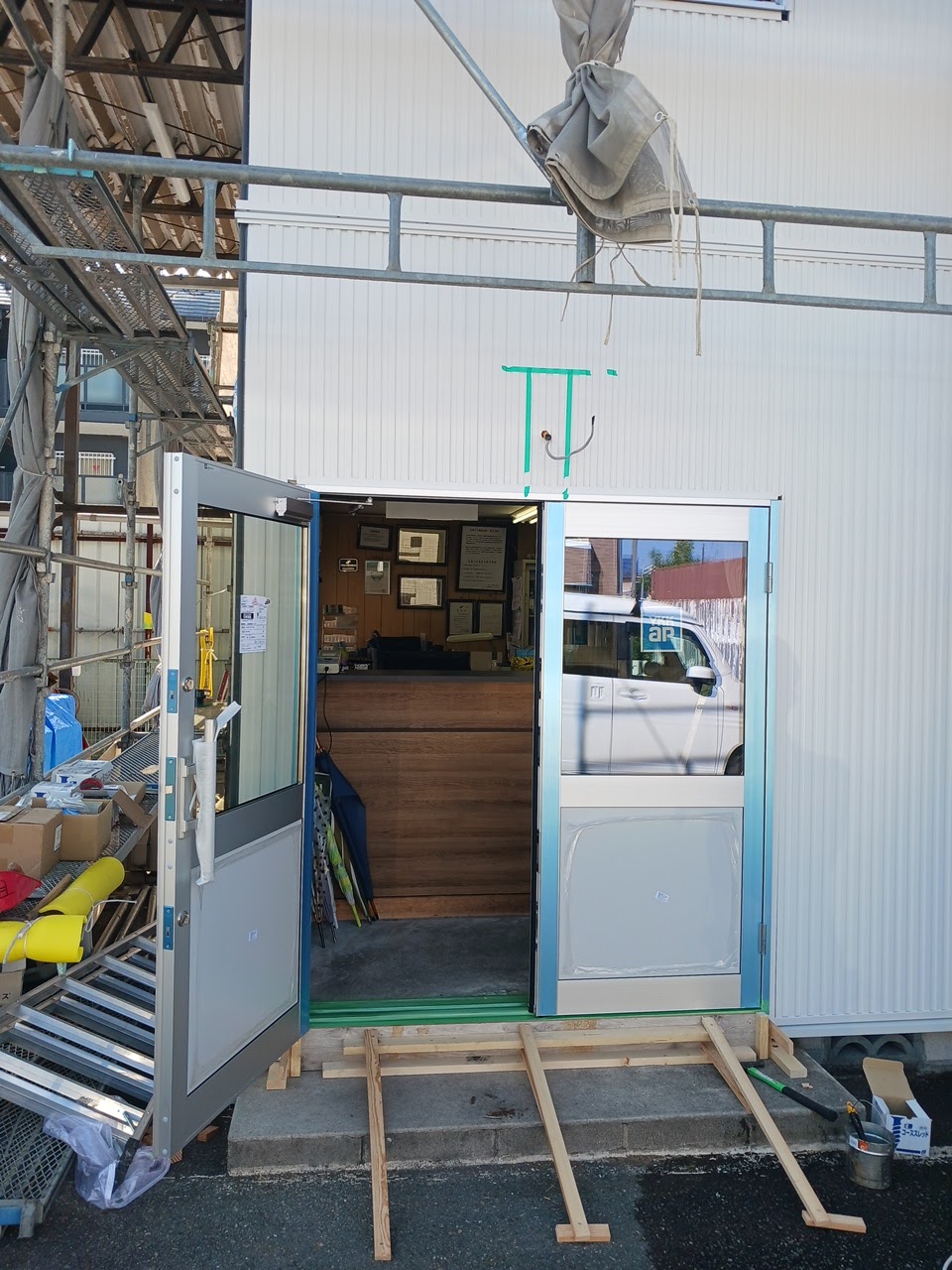 本日ご紹介するのは、先日お伺いしたアルミひさしのお取り付けの現場です。お客様から「店舗の入り口の上にひさしを取り付けてほしい。」とご要望を頂きました。