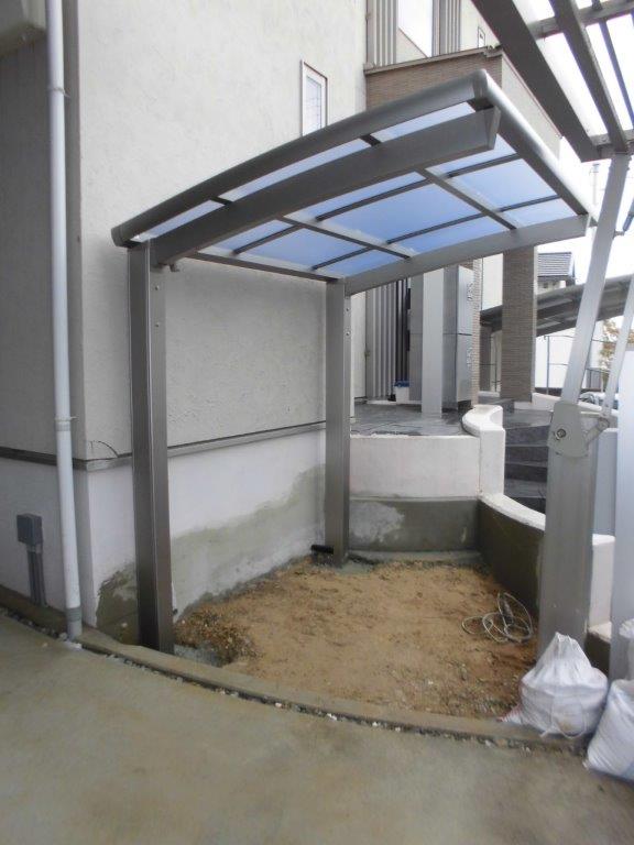 吹田市 ご自宅カーポート横、自転車置き場に雨除け屋根(LIXILフーゴRミニ サイクルポート)を取付しました。|