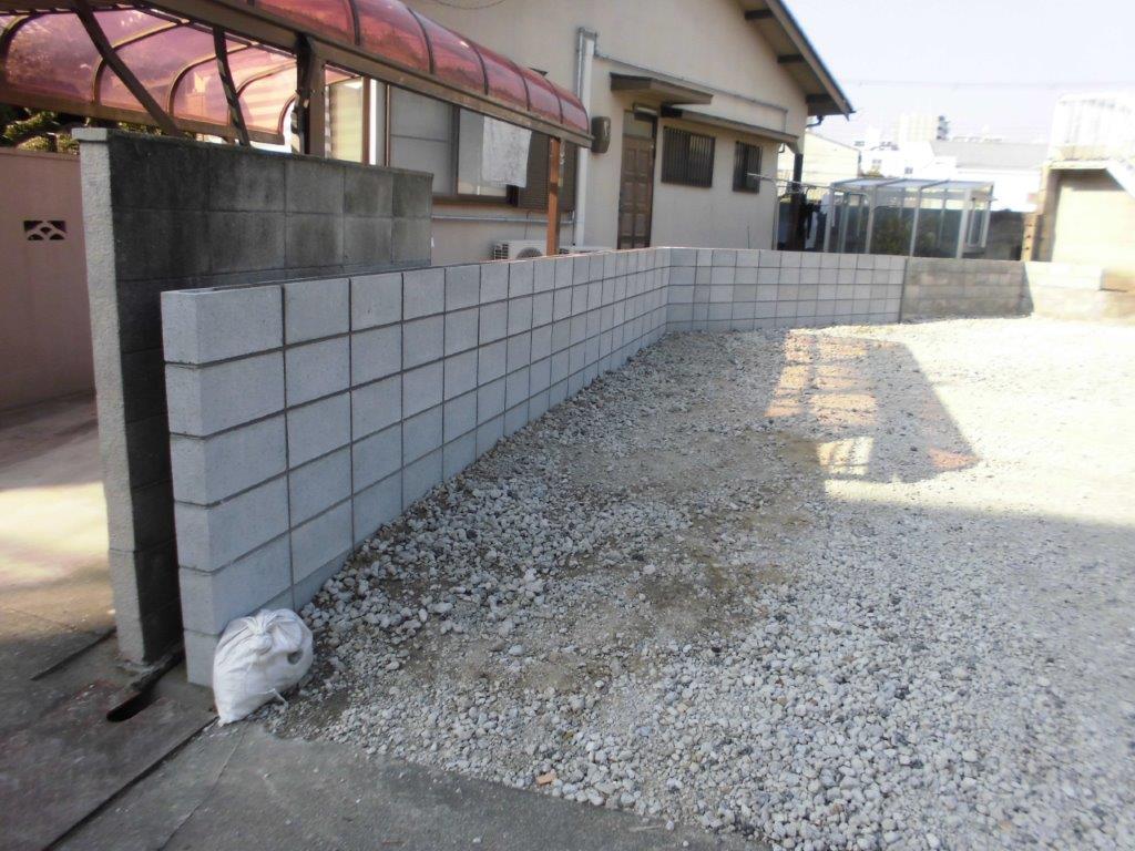 吹田市 お隣との境界にブロックを新設し、視線を遮る目隠しフェンスを取付しました。
