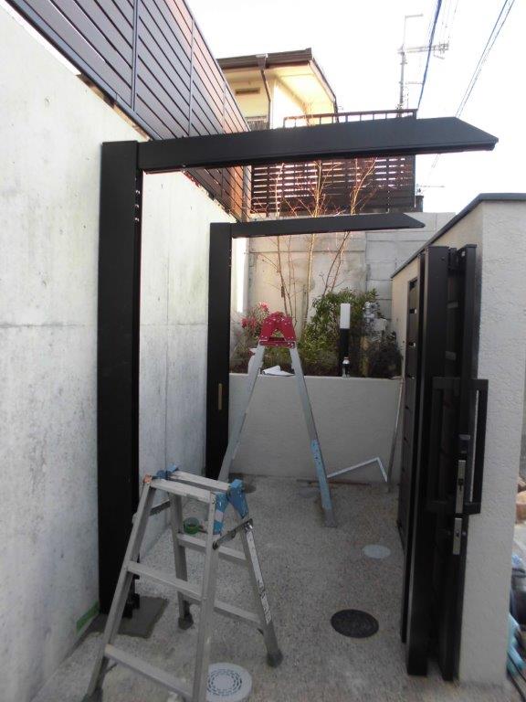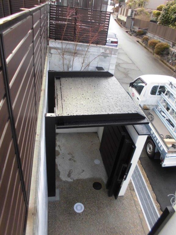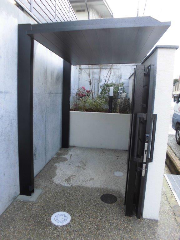 吹田市 ご自宅自転車置き場にLIXIL製カーポートSCミニ(内側木目調)を取付しました。