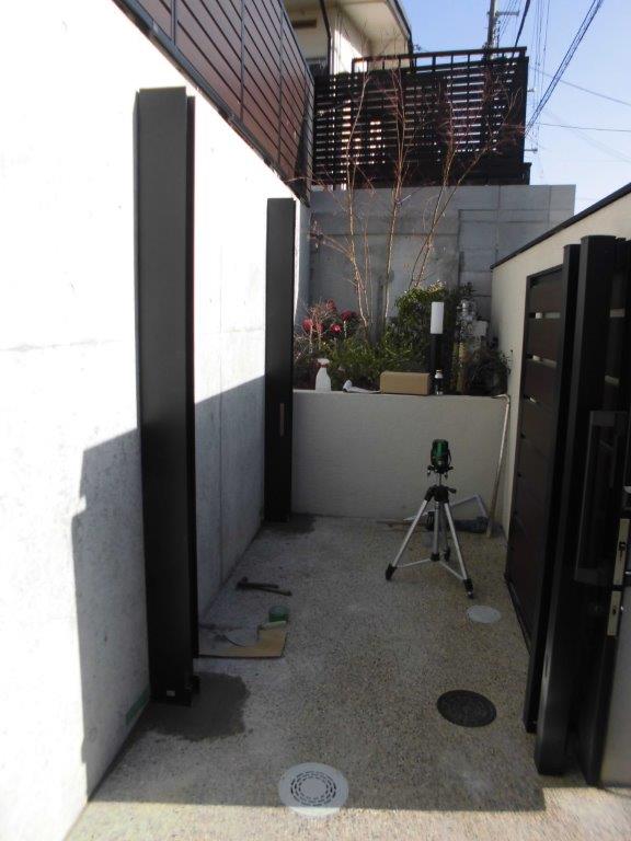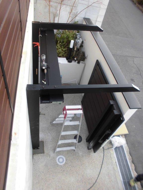 施工前 ご自宅自転車置き場に雨を防ぐ屋根を取付したいとのご相談を受けました。既存ガレージの屋根と同じタイプの自転車置き場用LIXIL製カーポートSCミニ(内側木目調)を取付する事となりましたので、その施工工程を掲載させて頂きます。