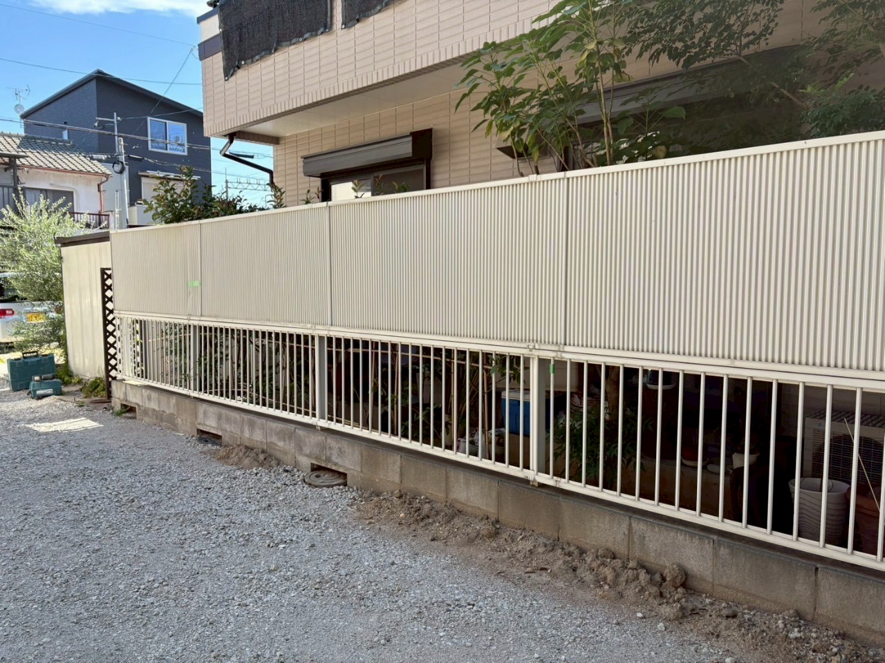 本日ご紹介するのは、先日お伺いしたアルミフェンスのお取替えの現場です。お客様から「フェンスが傷んでしまったので、取り換えたい。」とご要望を頂きました。現状は下は縦格子、上は目隠しの2段タイプになっていました。