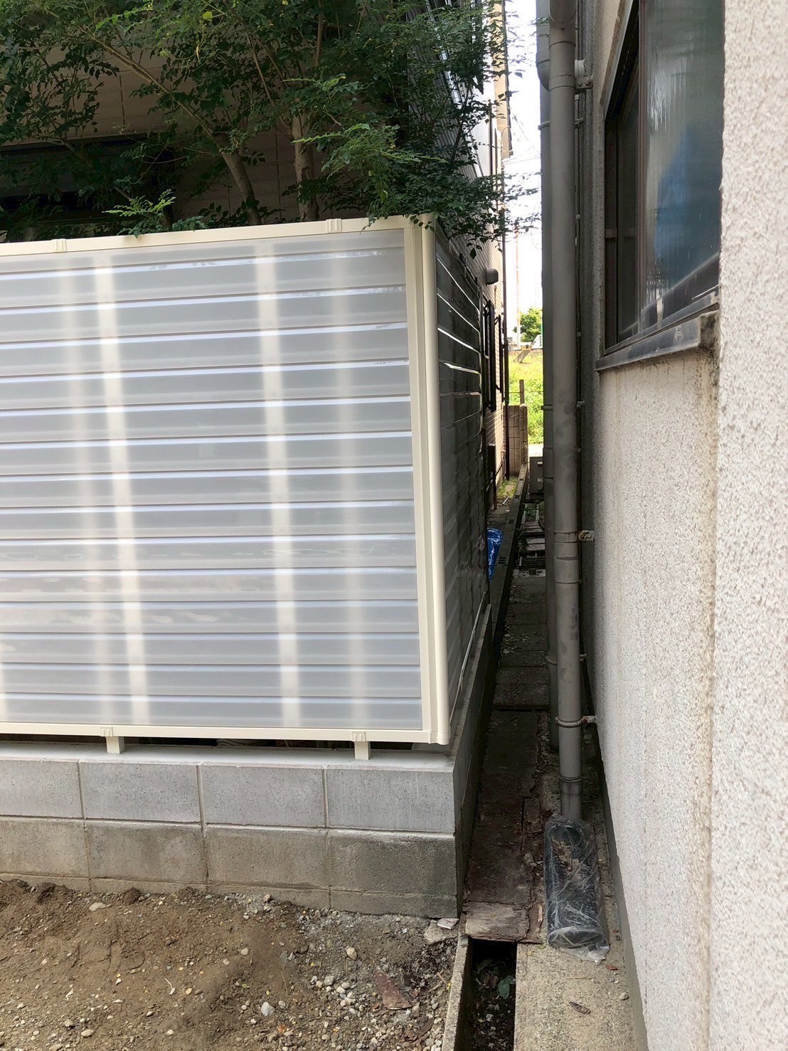 今回ご採用頂いたのは、YKK APシンプレオフェンス YL2型です。こちらのフェンスは、フェンスの材料がポリカーボネートになっており、目隠しをしながら光を取り入れることができるデザインとなっております!