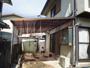 吹田市 スチール製雨除け屋根をアルミ製屋根に取替致しました。