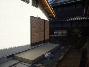 吹田市 アルミ片開き門扉、目隠しフェンス取付施工例です。