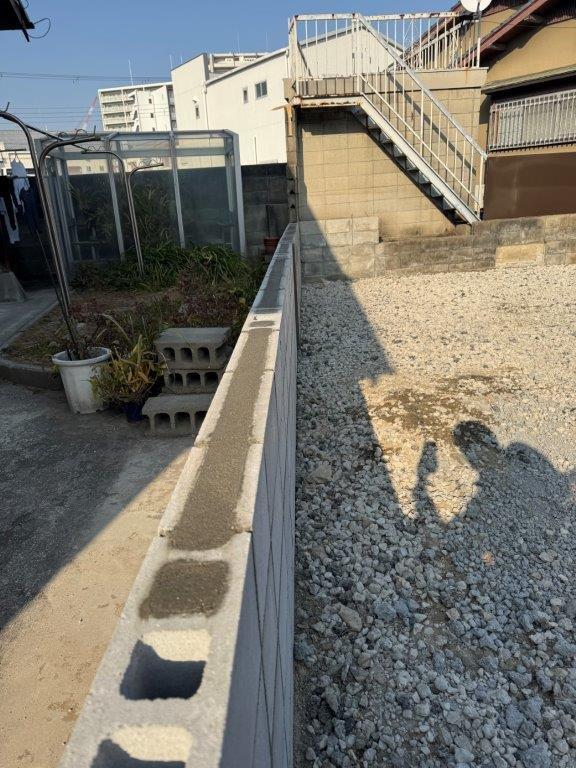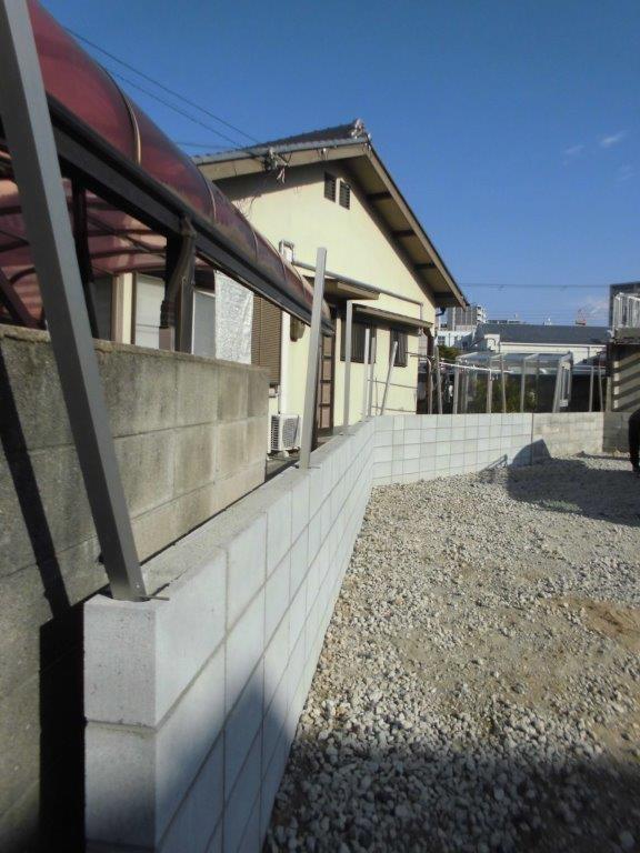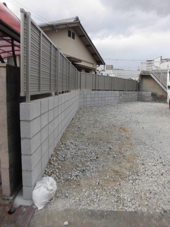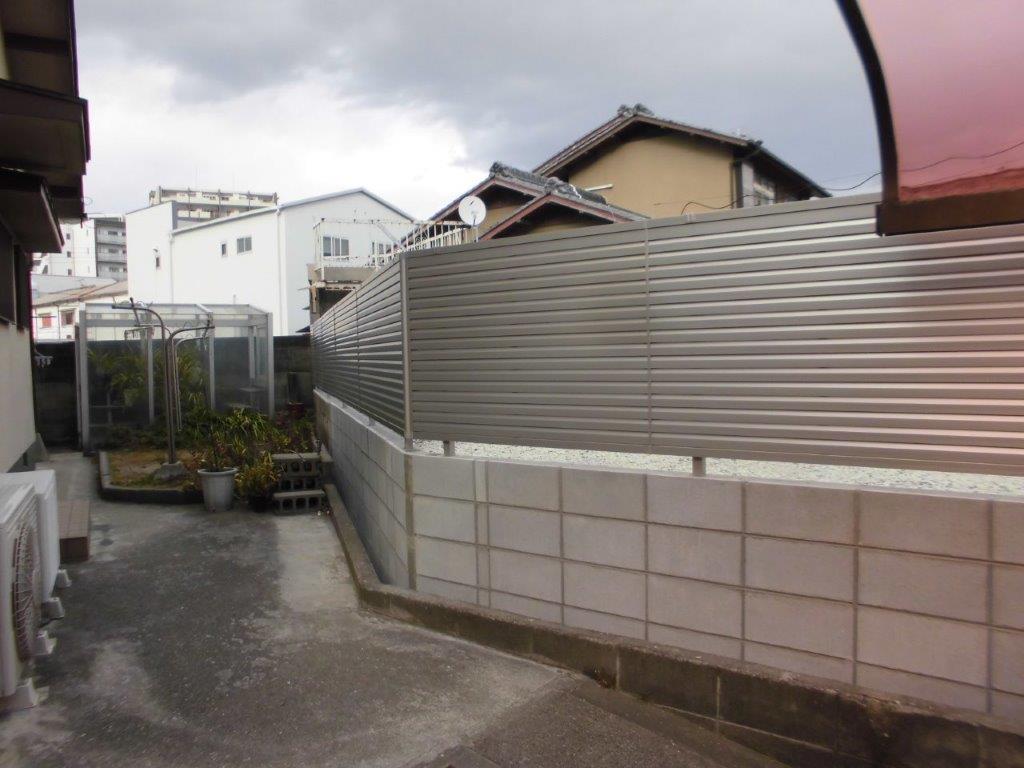 吹田市 お隣との境界にブロックを新設し、視線を遮る目隠しフェンスを取付しました。