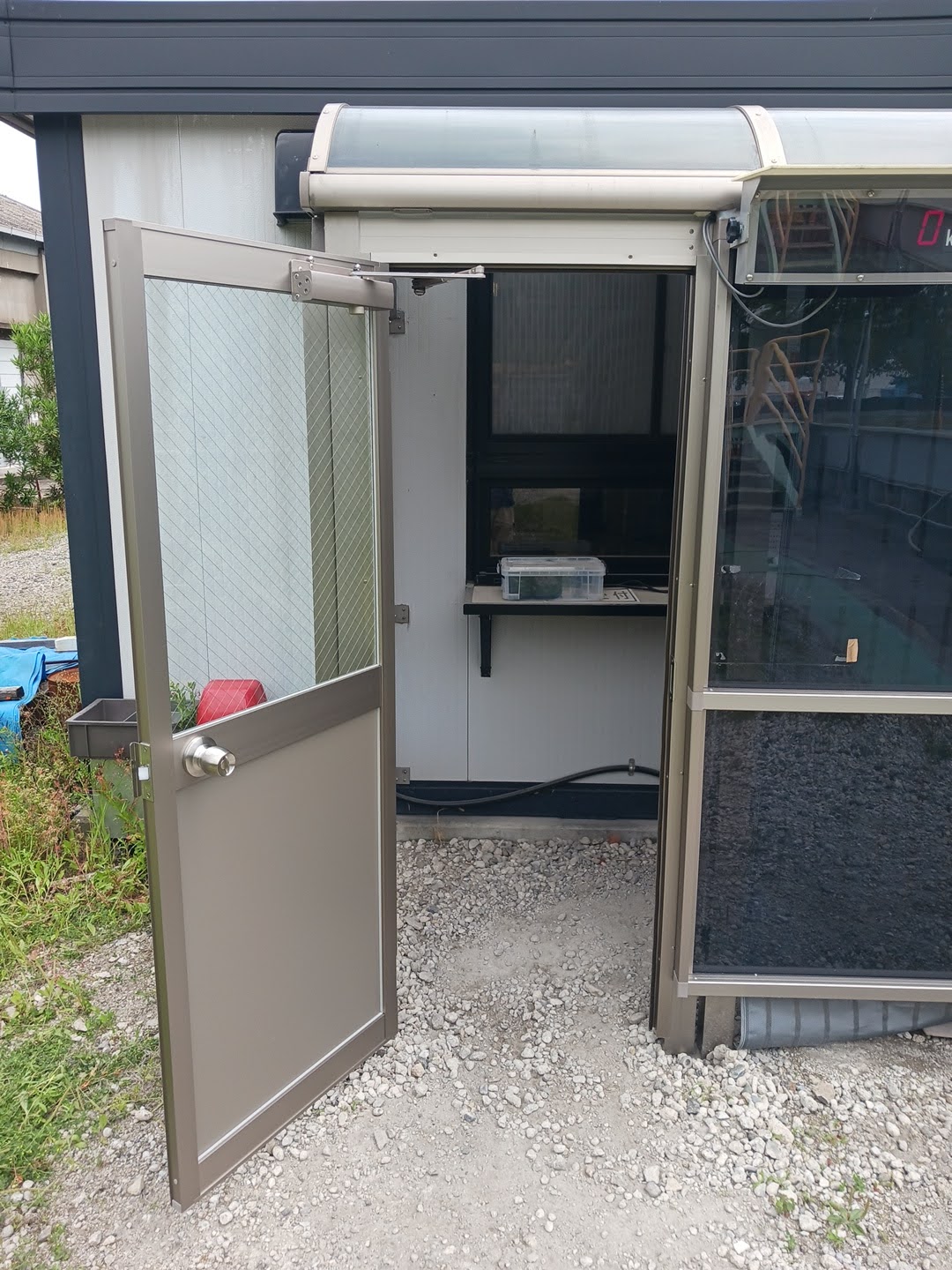 今回はアルミの角パイプで下地を組んで、アルミ框ドアをお取り付け致しました。