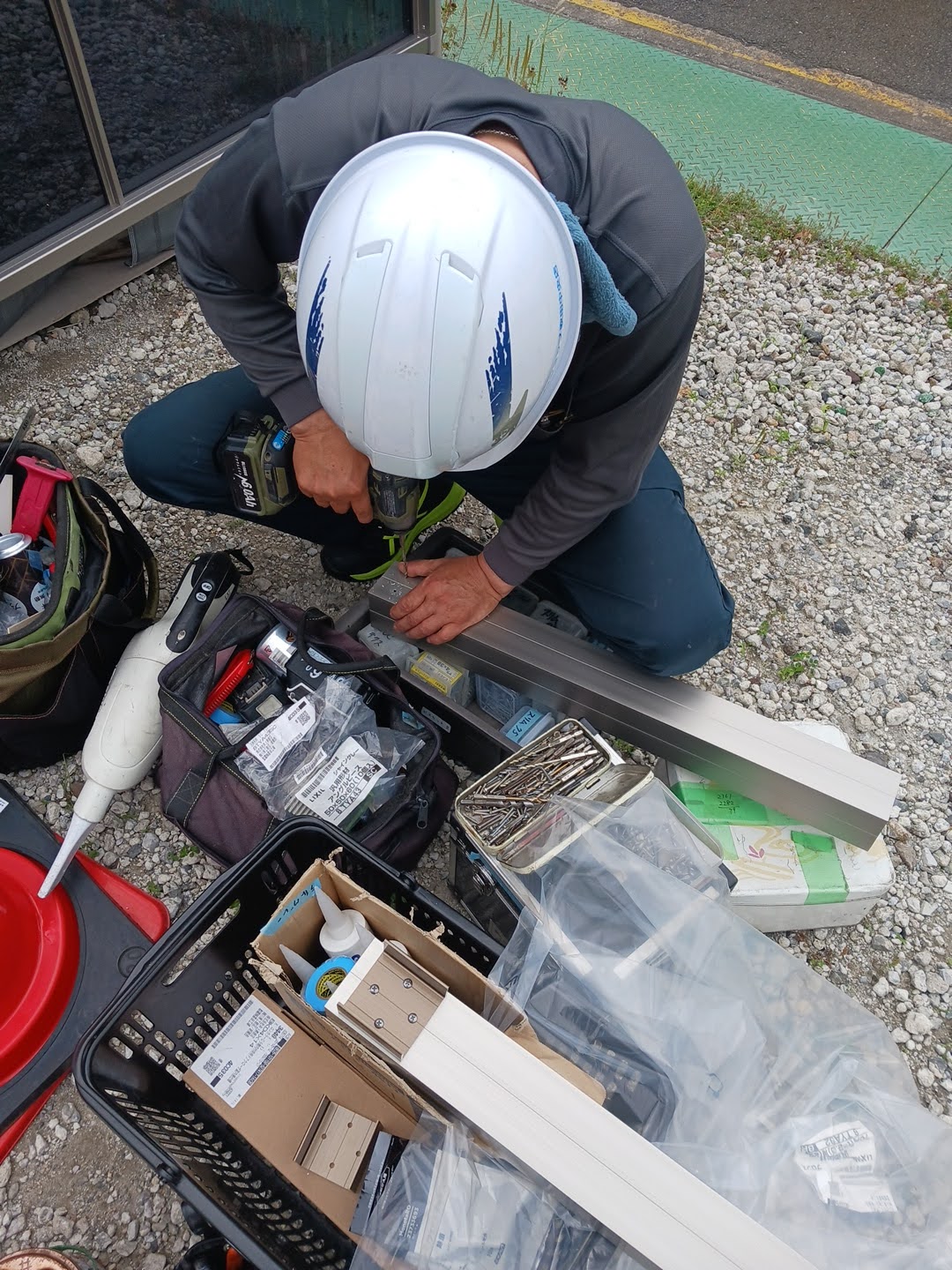 取付用の金物を取り付けたり、下穴を開けたりしています。