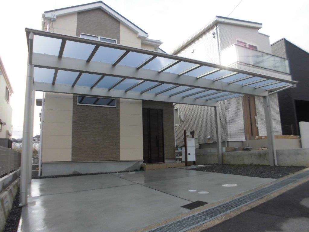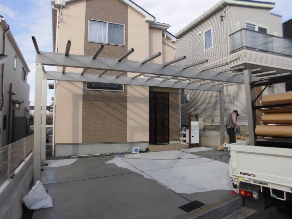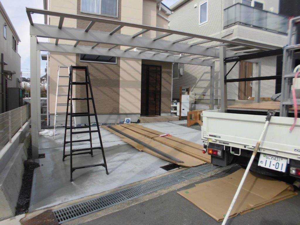 吹田市 ご自宅ガレージにカーポート3台用(YKKAP製エフルージュ)取付させて頂きました。