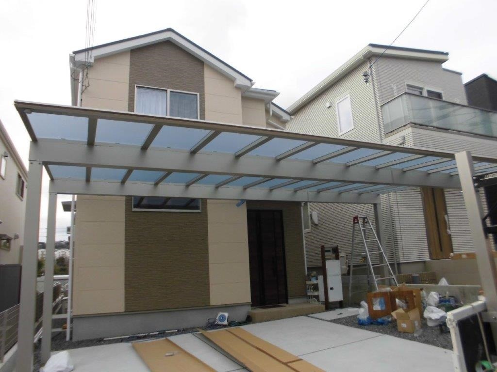吹田市 ご自宅ガレージにカーポート3台用(YKKAP製エフルージュ)取付させて頂きました。|