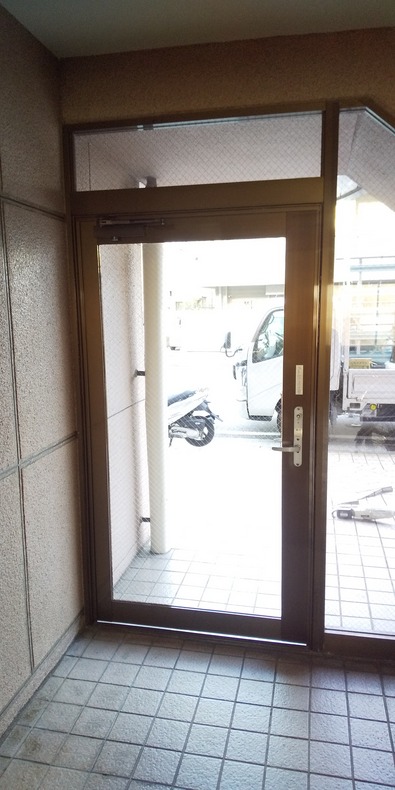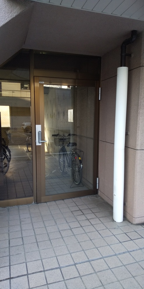 お客様から「駐輪場のドアがきっちり閉まりきらなくなったので、取り換えて欲しい。次のドアには自動施錠の鍵を付けて欲しい。」とご要望を頂きました。