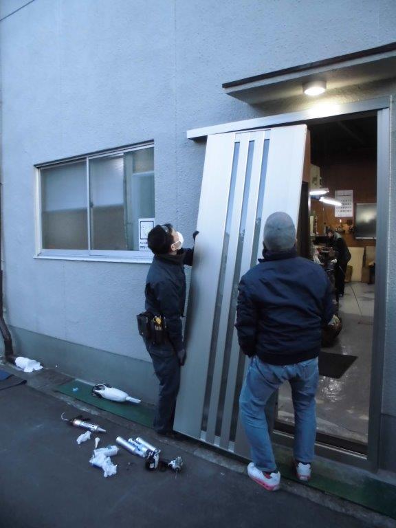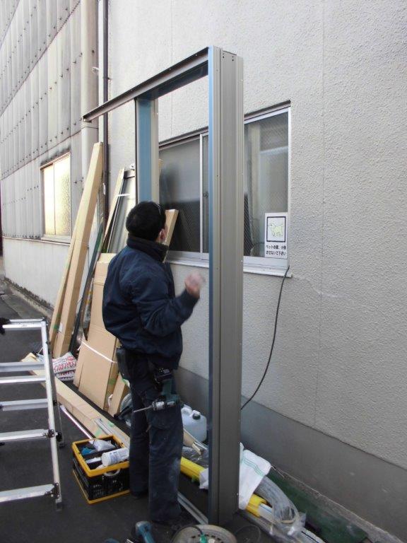 吹田市 片開きドアからアウトセット引戸(片引き戸)へ取替しました。