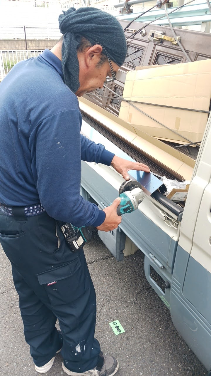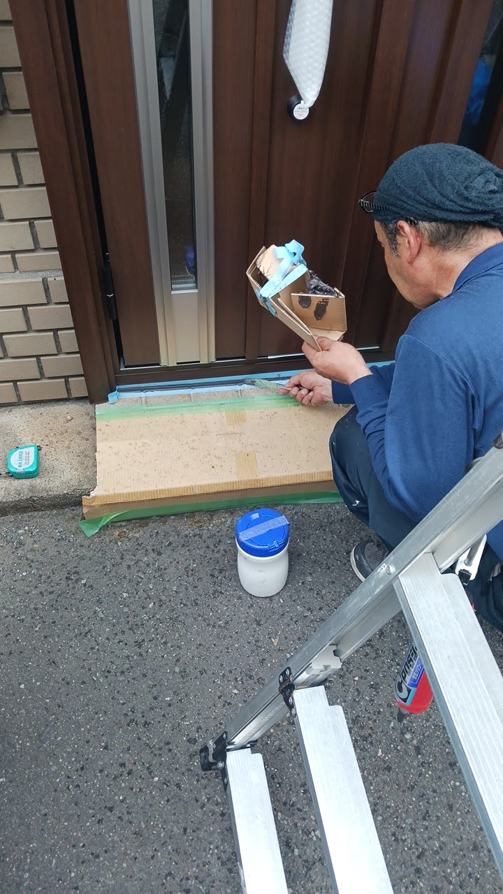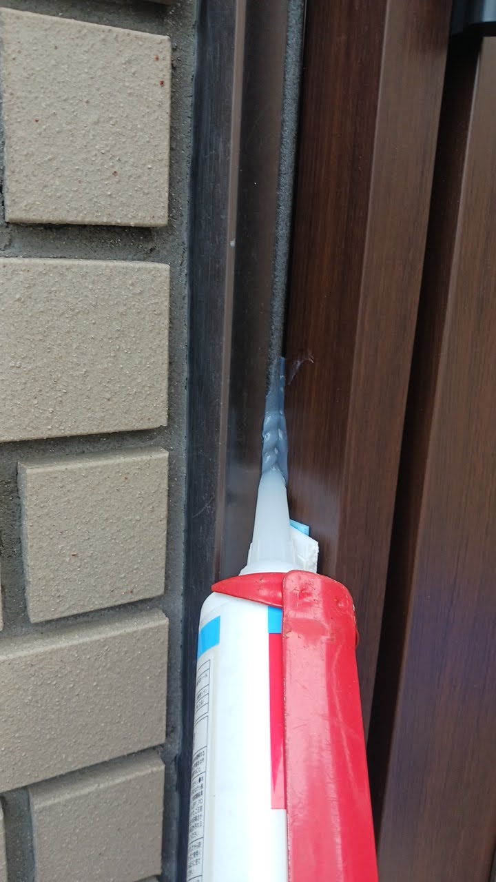 新しい枠の固定が終わったら、既存枠と新しい枠の間をコーキング処理していきます。この処理をすることで、ドアからの雨漏れを防ぎ、気密性を向上しています!