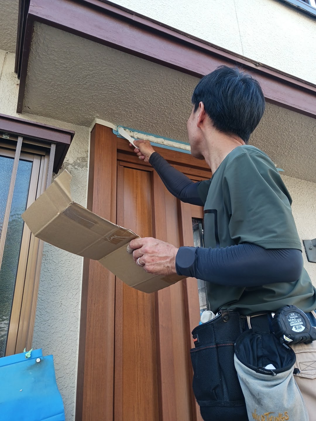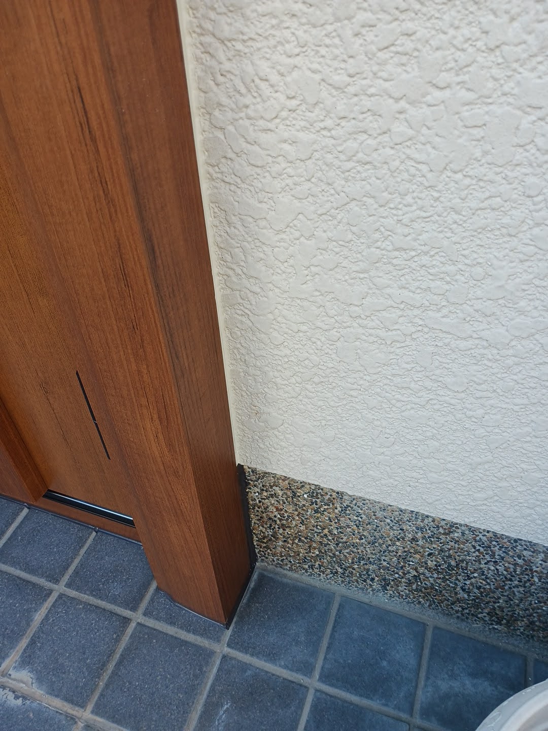 こちらは、外部側のカバー材と外壁との取り合いをコーキング処理しています。